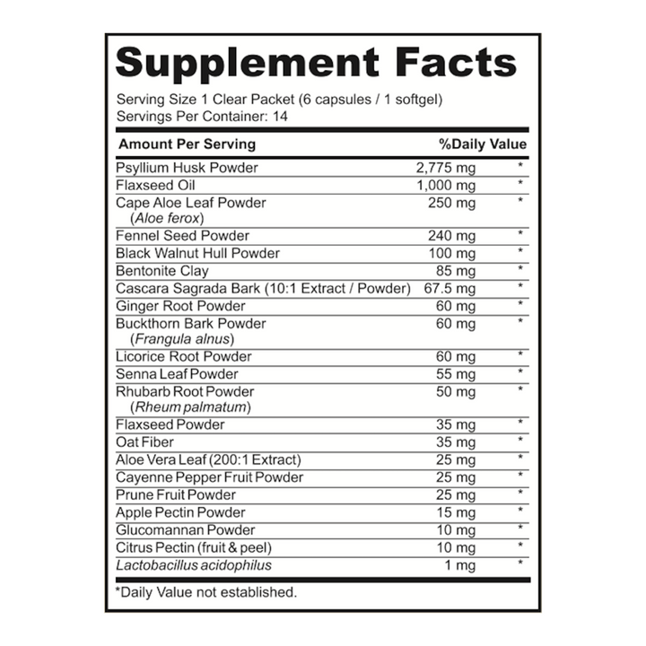 → Flaxseed & Psyllium Husk: Natural sources of soluble fiber that help support healthy bowel movements and gentle elimination.*