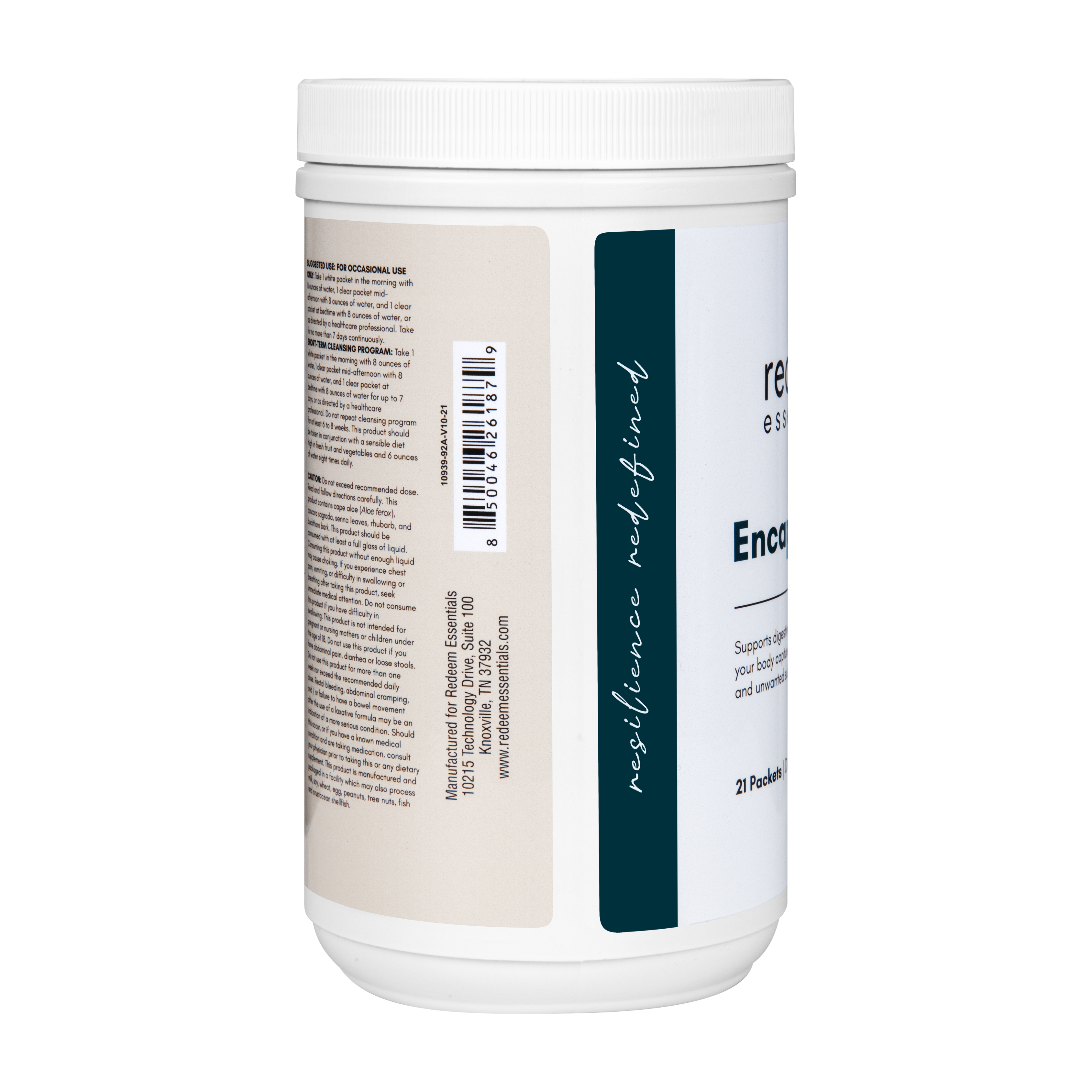 EncapSure is a convenient 7-day cleansing system designed to support the body’s natural detox processes, promote digestive regularity, and help you feel lighter and more refreshed. Each daily packet includes three targeted supplement blends — Digestive Support, Fiber & Flax, and Herbal Cleanse — formulated with time-tested herbs, enzymes, and nutrients to gently support internal cleansing and digestive comfort.*