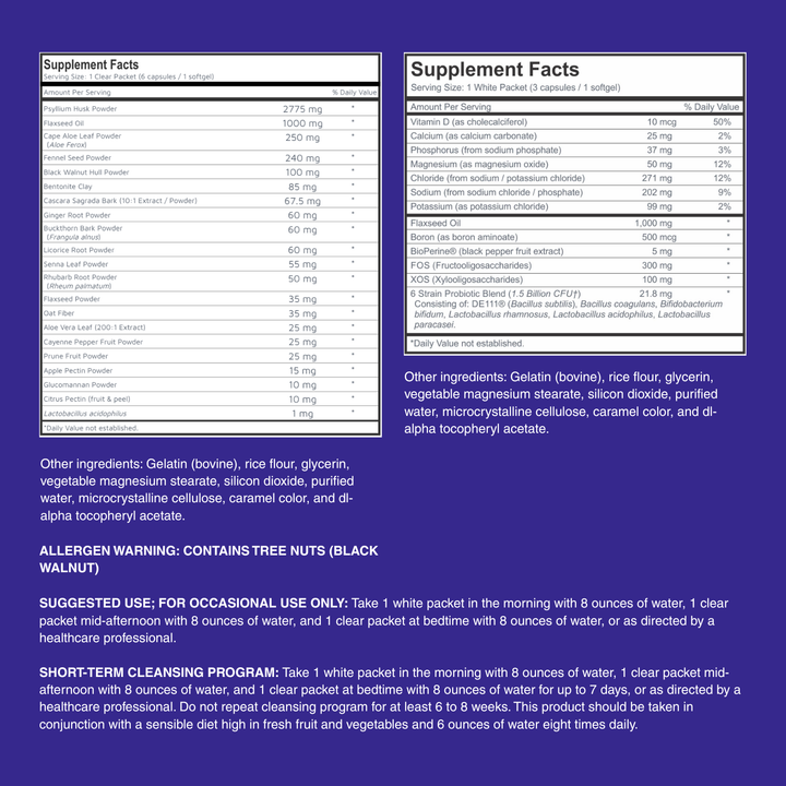 Take one packet daily for 7 days with at least 8 oz. of water. For best results, follow a clean, whole-food eating plan and drink plenty of fluids during the cleanse.