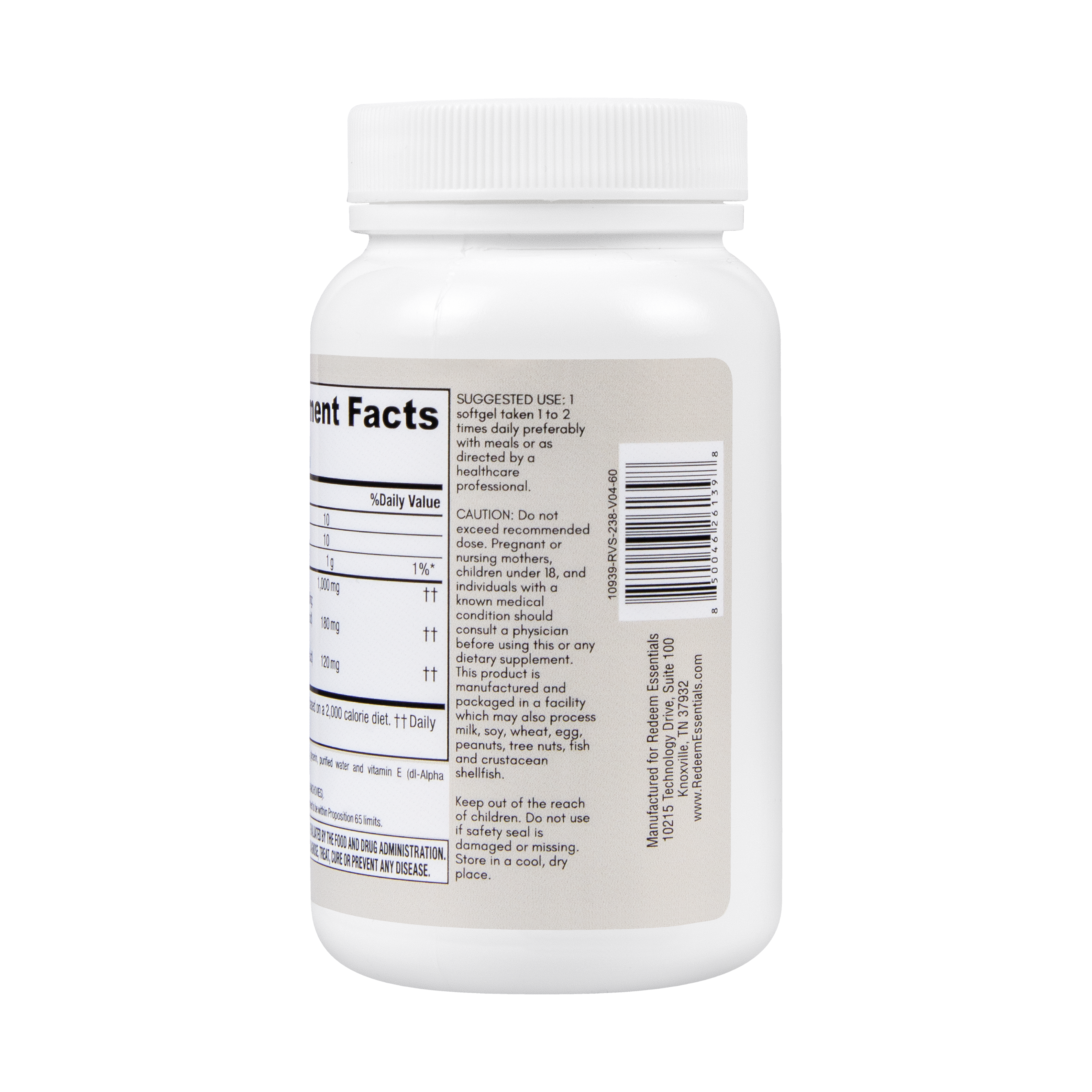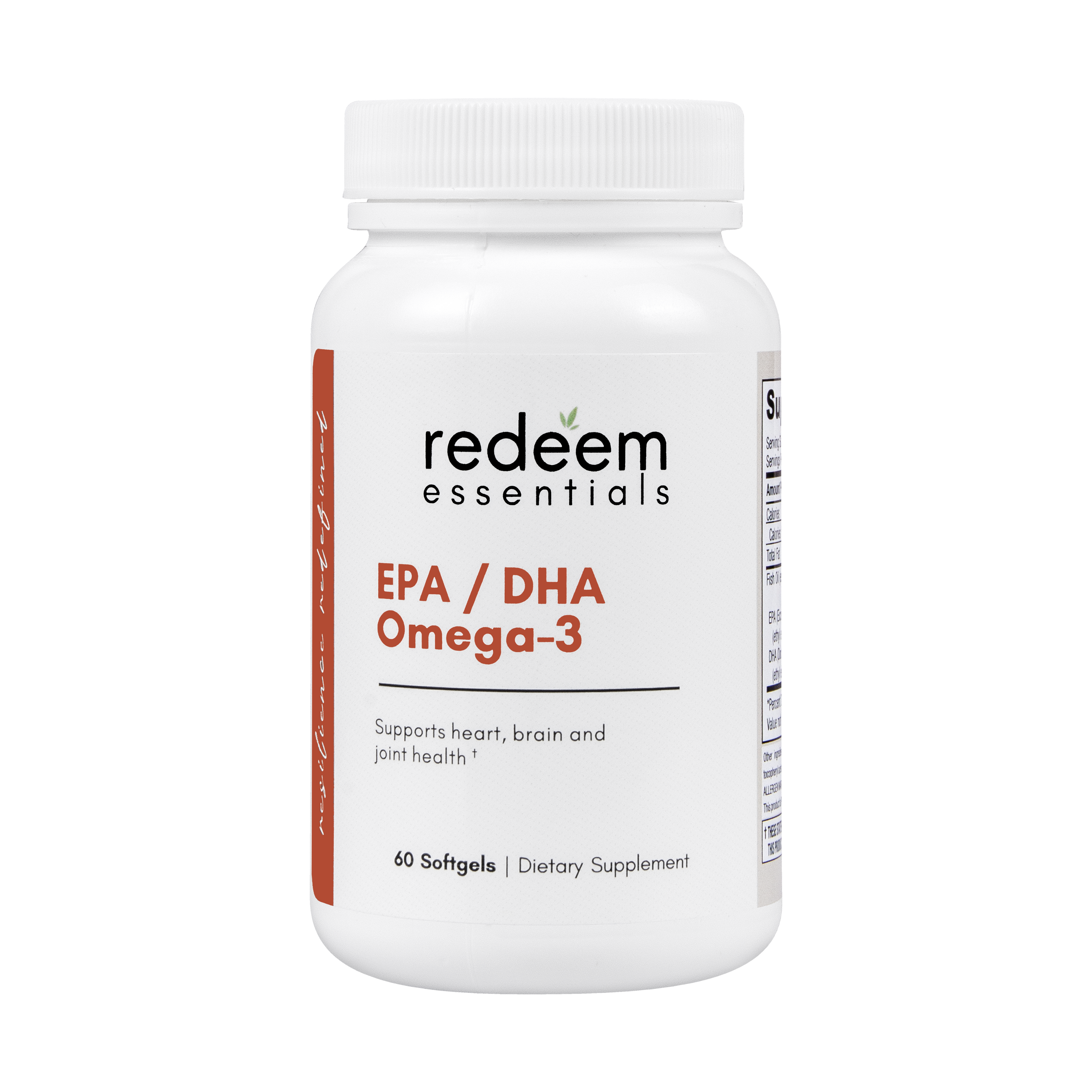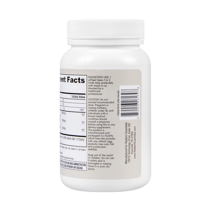 Redeem Essentials EPA / DHA Omega 3 supplement provides a potent combination of fish oil, EPA, and DHA to support overall health and well-being. Fish oil delivers a broad range of omega-3 fatty acids that promote heart health, reduce inflammation, and support brain function. EPA specifically contributes to cardiovascular health, reduces inflammation, and supports mood balance. DHA is vital for brain development, cognitive function, eye health, and also supports heart health. Together, these ingredients work synergistically to provide comprehensive benefits for the heart, brain, eyes, and overall inflammatory response, promoting optimal health.