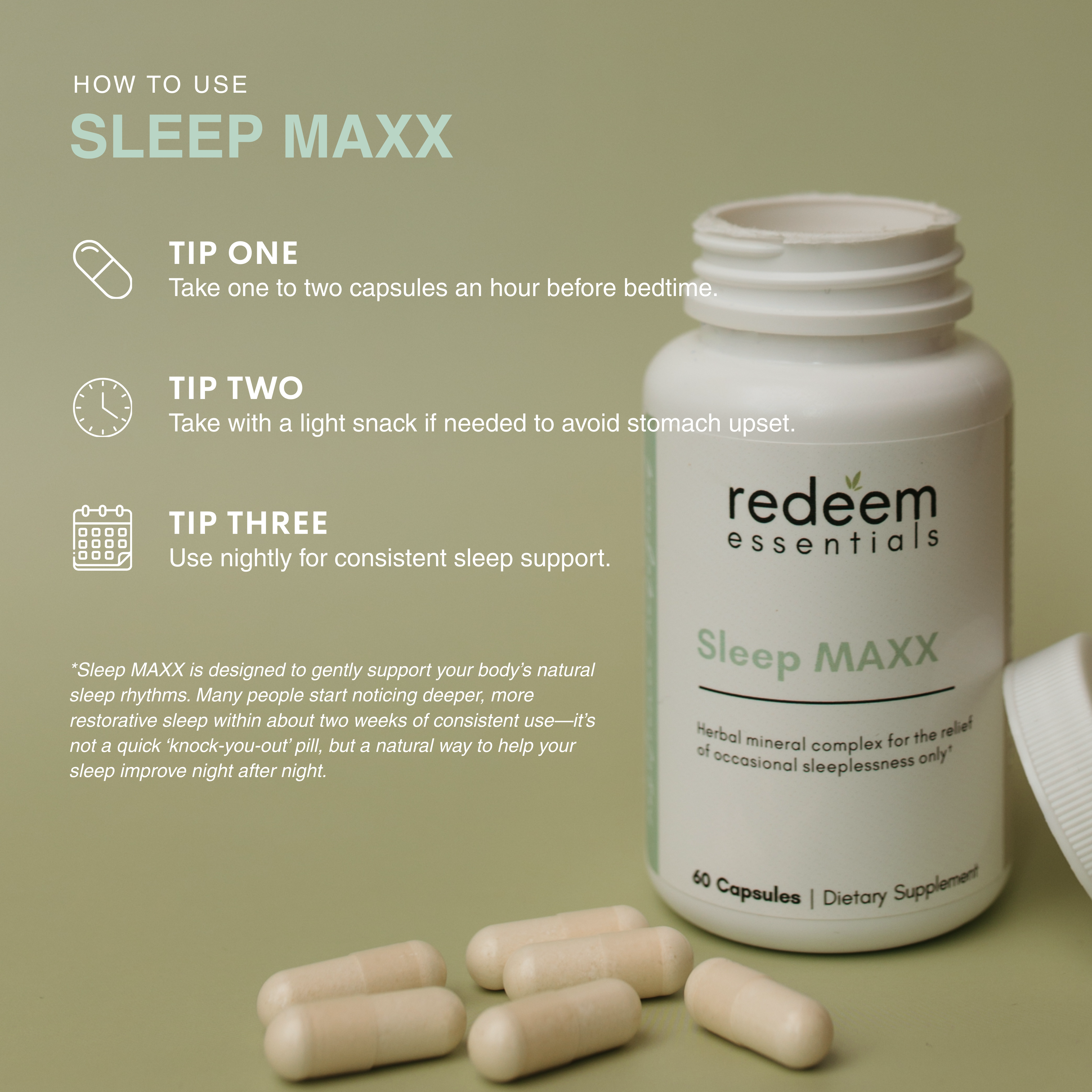 Supplements are most effective when paired with healthy lifestyle habits. Creating a wind-down routine, limiting screens before bed, keeping a consistent sleep schedule, and optimizing your sleep environment all work hand-in-hand with Sleep MAXX to promote deeper, more restorative sleep.