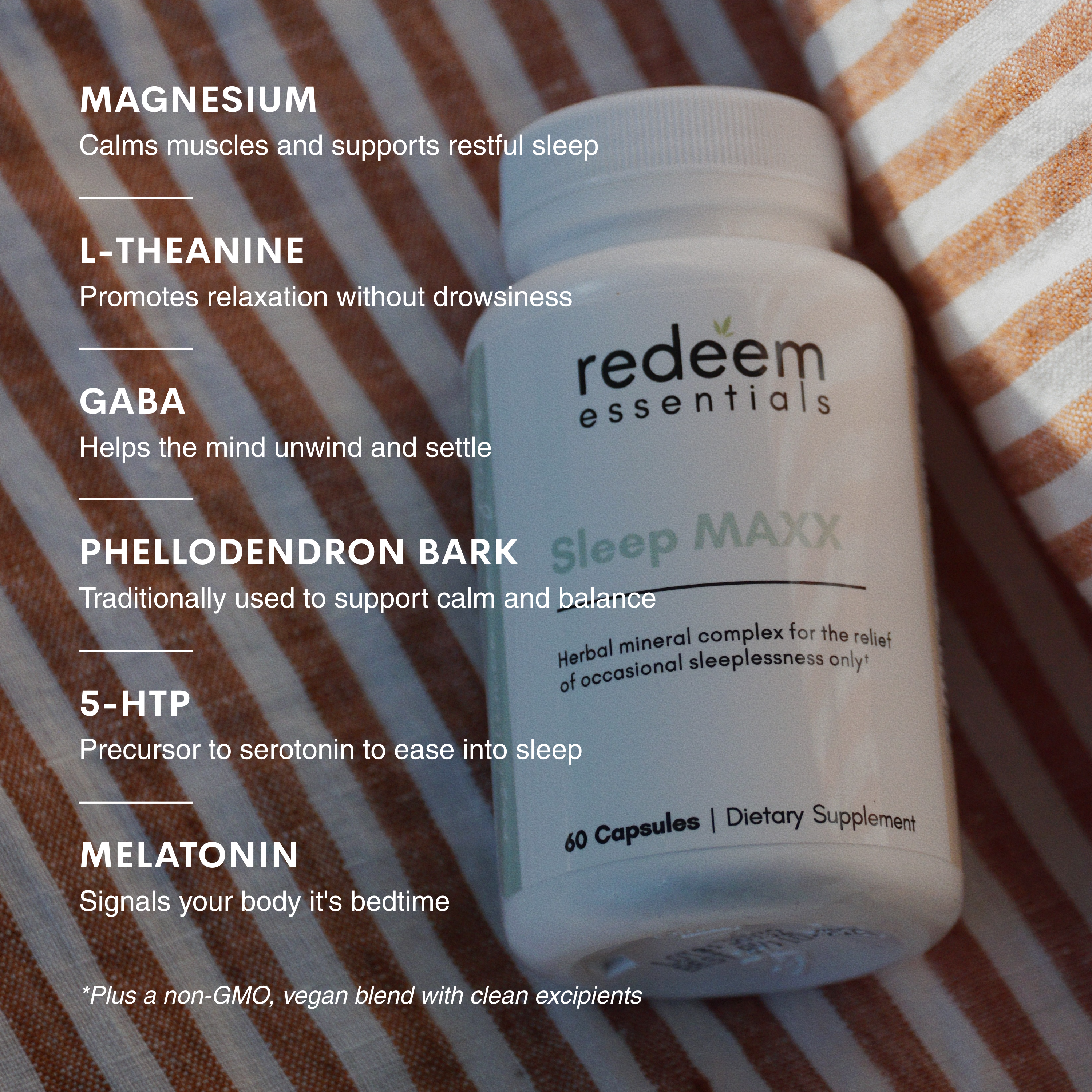 Sleep MAXX is an all-natural sleep aid designed to help you achieve restful, uninterrupted sleep and wake up feeling refreshed. Packed with a synergistic blend of ingredients, this formula promotes relaxation, reduces stress, and supports your body’s natural sleep-wake cycle. Whether you're struggling with occasional sleepless nights or looking for a reliable way to enhance your sleep quality, Sleep MAXX is here to support your goals for better rest and overall well-being.